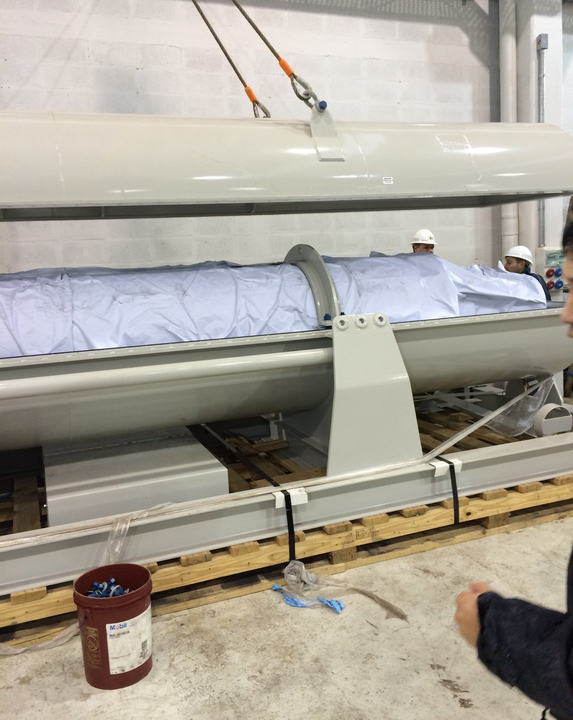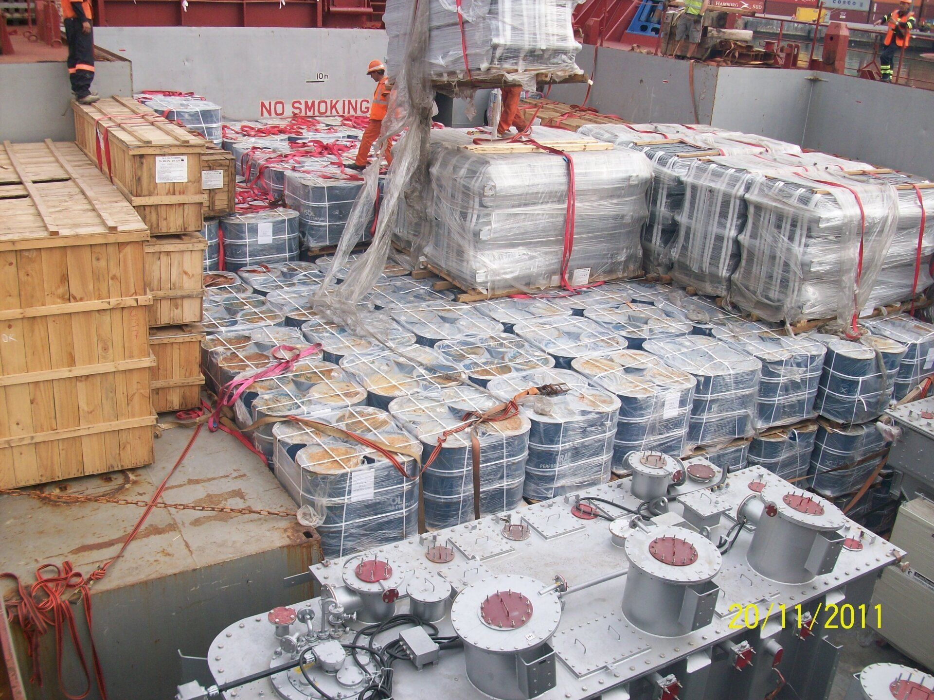 Nuestra empresa participo tanto del diseño, el design review, los ensayos en fabrica, transporte internacional y nacional, descarga, montaje y comisionamiento.